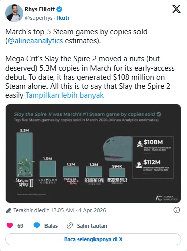 - Game ini sudah mencapai sekitar 4,6 juta copy terjual per pertengahan Maret 2026