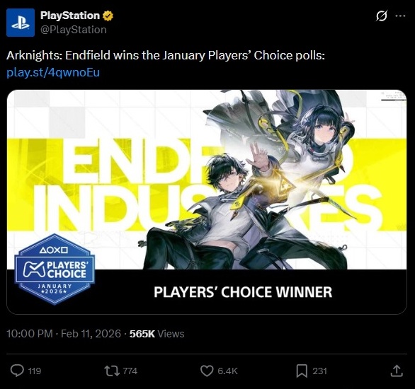 Arknights: Endfield resmi dinobatkan sebagai pemenang Players’ Choice Best New Game untuk Januari 2026. Penghargaan ini diberikan melalui voting komunitas yang digelar oleh PlayStation Blog, di mana para pemain memilih game baru terbaik yang dirilis sepanjang bulan tersebut.