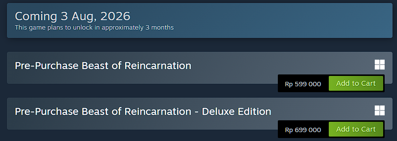 Beast of Reincarnation dijadwalkan rilis pada 4 Agustus 2026, dengan versi PC kemungkinan tersedia lebih awal tergantung zona waktu platform.