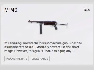 Mobilitas Tinggi : Saat memakai MP40, karakter bergerak lebih gesit. Ini menguntungkan saat melakukan strafing atau menghindari tembakan.
