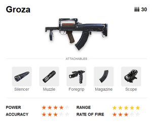 Tips Menggunakan GROZA : Gunakan scope 2x atau 4x untuk memaksimalkan akurasi jarak menengah. Selalu cari posisi yang aman ketika reload, karena reload time GROZA agak lama. Kombinasikan dengan SMG atau shotgun sebagai senjata kedua untuk close combat. Manfaatkan karakter seperti D – Bee, Kelly, atau Hayato untuk memperkuat agresivitasmu. Fokus pada duel jarak menengah, tempat GROZA benar – benar bersinar.