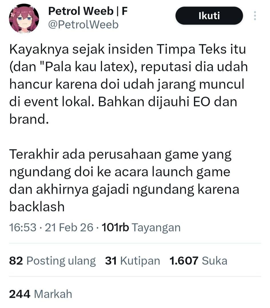 Kasus ini kembali memicu diskusi tentang bagaimana dampak kontroversi media sosial bisa berpengaruh pada kerja sama brand dan undangan event. Apakah ini benar-benar “efek domino” dari drama sebelumnya? Atau hanya kebetulan yang dibesar-besarkan?