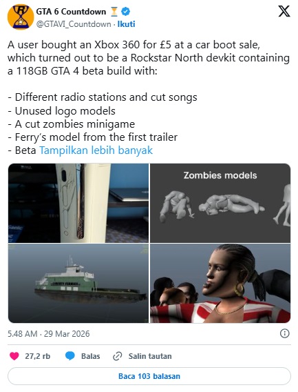 Seorang penggemar Xbox 360 baru-baru ini menjadi sorotan komunitas gaming setelah menemukan sesuatu yang sangat langka : konsol bekas pengembangan (dev kit) yang diduga pernah digunakan oleh Rockstar Games.