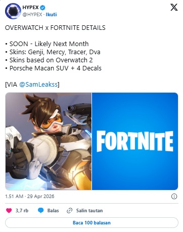 Potensi kolaborasi antara Fortnite dan Overwatch menjadi salah satu crossover paling menarik di tahun 2026. Dengan kemungkinan hadirnya karakter ikonik, mode baru, dan event khusus, kolaborasi ini berpotensi menjadi momen besar bagi kedua komunitas.