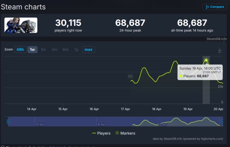 Kesuksesan rating ini juga diiringi dengan angka pemain yang tinggi. Berdasarkan data SteamDB :