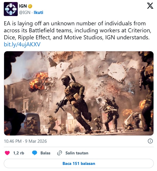 Laporan terbaru dari media gaming IGN menyebutkan bahwa Electronic Arts (EA) telah melakukan pemutusan hubungan kerja terhadap sejumlah karyawan yang bekerja di berbagai tim pengembang dalam ekosistem Battlefield Studios.