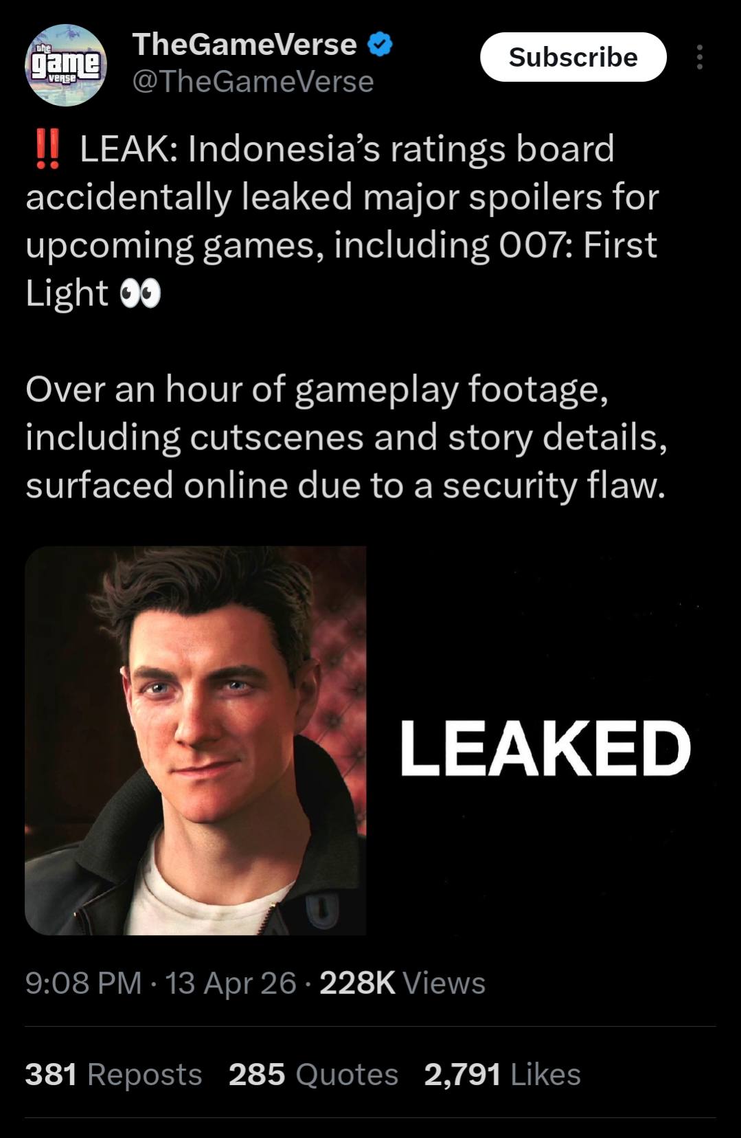 Disebutkan bahwa total materi yang bocor mencapai lebih dari satu jam, termasuk bagian yang seharusnya masih dirahasiakan oleh developer.
