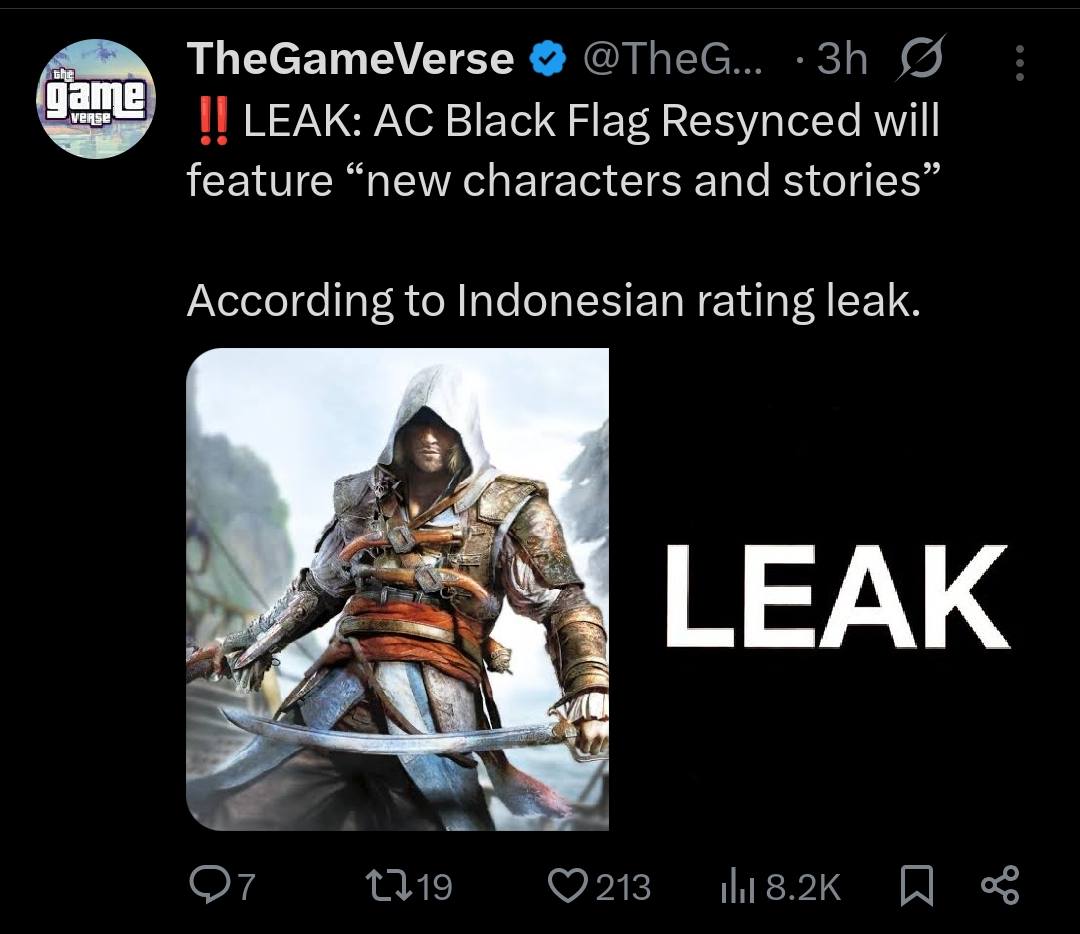 - Detail karakter dan cerita baru dari Assassin’s Creed IV: Black Flag versi “resynced”