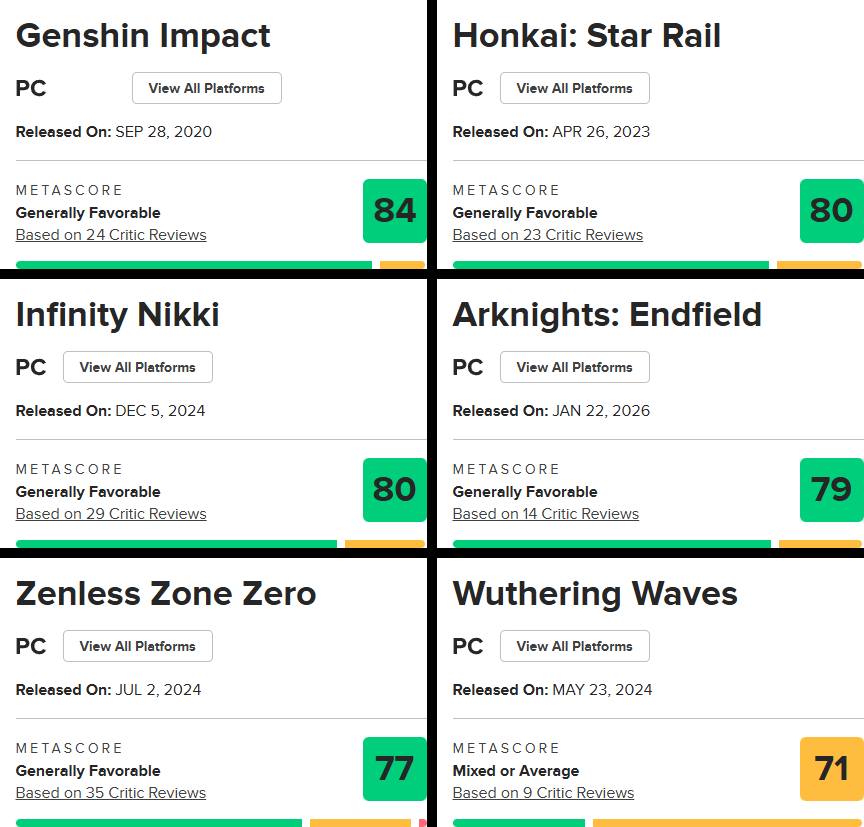 Jika Twitch mencerminkan popularitas saat ini, maka Metacritic lebih menunjukkan penerimaan kualitas dari sudut pandang kritikus.