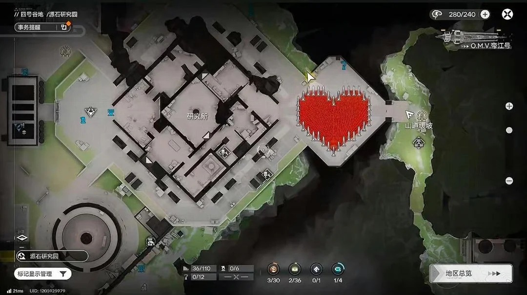 Pada pandangan pertama, area ini tampak seperti zona berbahaya yang dipenuhi pilar dan sinar laser merah menyala. Namun ketika dilihat melalui tampilan peta, susunannya ternyata membentuk simbol hati yang rapi dan presisi. Desain ini bukan hanya enak dipandang, tetapi juga menunjukkan pemahaman mendalam pemain terhadap sistem pembangunan, penempatan objek, serta logika pertahanan di Arknights: Endfield.