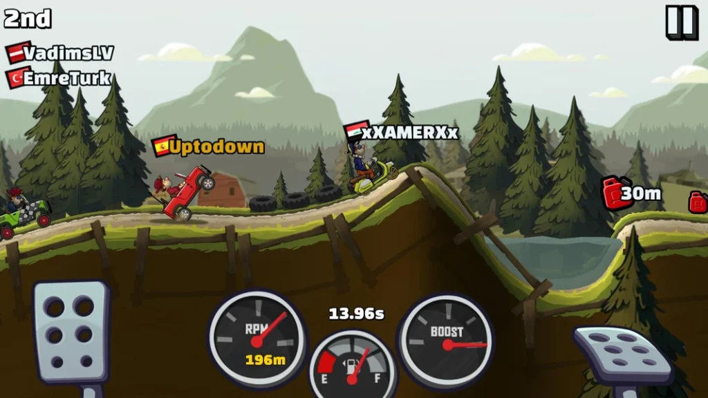 Pemain mengendalikan karakter yang mengemudikan kendaraan dari bagian bawah ke puncak bukit, melalui jalan yang bergelombang dan sering kali penuh tantangan (lubang, lintasan terjal, dan sebagainya). Di versi “2”, ada mode online multiplayer dimana kamu bisa bersaing dengan pemain lain secara langsung, bukan hanya melawan “waktu” atau “checkpoint”. Terdapat sistem upgrade kendaraan (mesin, suspensi, roda) serta sistem kosmetik/personalization yang memberi nuansa “koleksi” selain sekadar tantangannya. Kendali cukup sederhana : akselerasi, rem, dan kemiringan untuk menyeimbangkan kendaraan saat melewati bukit – ini membuatnya mudah diakses, namun sulit untuk dikuasai secara maksimal karena tiap lintasan punya tantangan tersendiri.