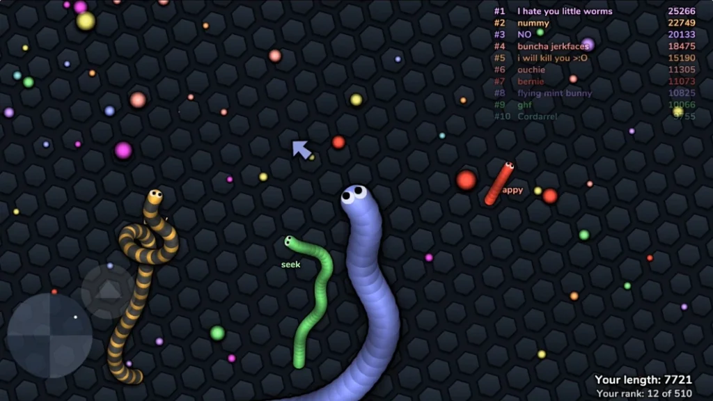 Gameplay – nya mudah dipahami tetapi sulit untuk dikuasai. Kamu hanya perlu mengarahkan ular menggunakan jari (di Android) atau kursor (di PC) agar memakan orb bercahaya. Namun, strategi sebenarnya muncul ketika kamu harus memancing ular lain agar menabrak tubuhmu – karena jika mereka mati, kamu bisa memakan sisa energi mereka dan tumbuh lebih cepat. Kunci kemenangan bukan cuma refleks cepat, tapi juga strategi pergerakan dan kesabaran.