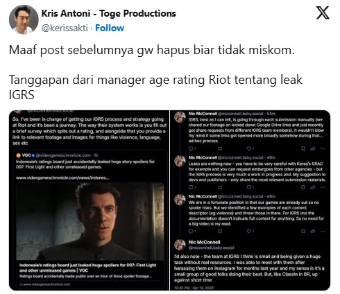 Dalam pernyataan yang beredar di komunitas industri, perwakilan Riot Games tersebut menyoroti adanya inkonsistensi dalam penerapan rating usia untuk game yang beredar di Indonesia. Ia menilai bahwa beberapa judul mendapatkan klasifikasi yang tidak selaras dengan standar internasional, sehingga membingungkan baik bagi publisher maupun pemain.