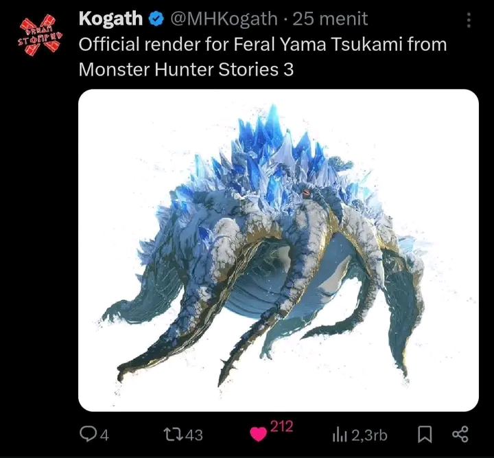 “Official render for Feral Yama Tsukami from Monster Hunter Stories 3.”