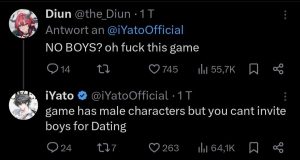 Banyak penggemar menuduh tindakan ini sebagai upaya gatekeeping yang disengaja untuk mengusir pemain yang menginginkan konten inklusif (karakter pria), agar game tersebut terlihat hanya berfokus pada konten waifu atau male-gaze.