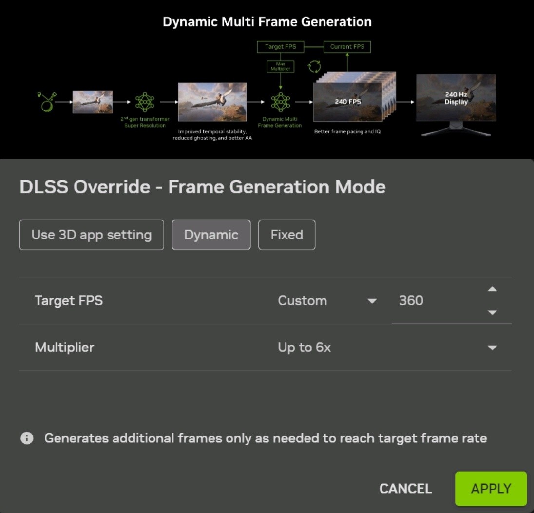 Berbeda dengan generasi sebelumnya yang menggunakan pengaturan tetap, Dynamic Multi Frame Generation mampu menyesuaikan jumlah frame yang dihasilkan secara dinamis.