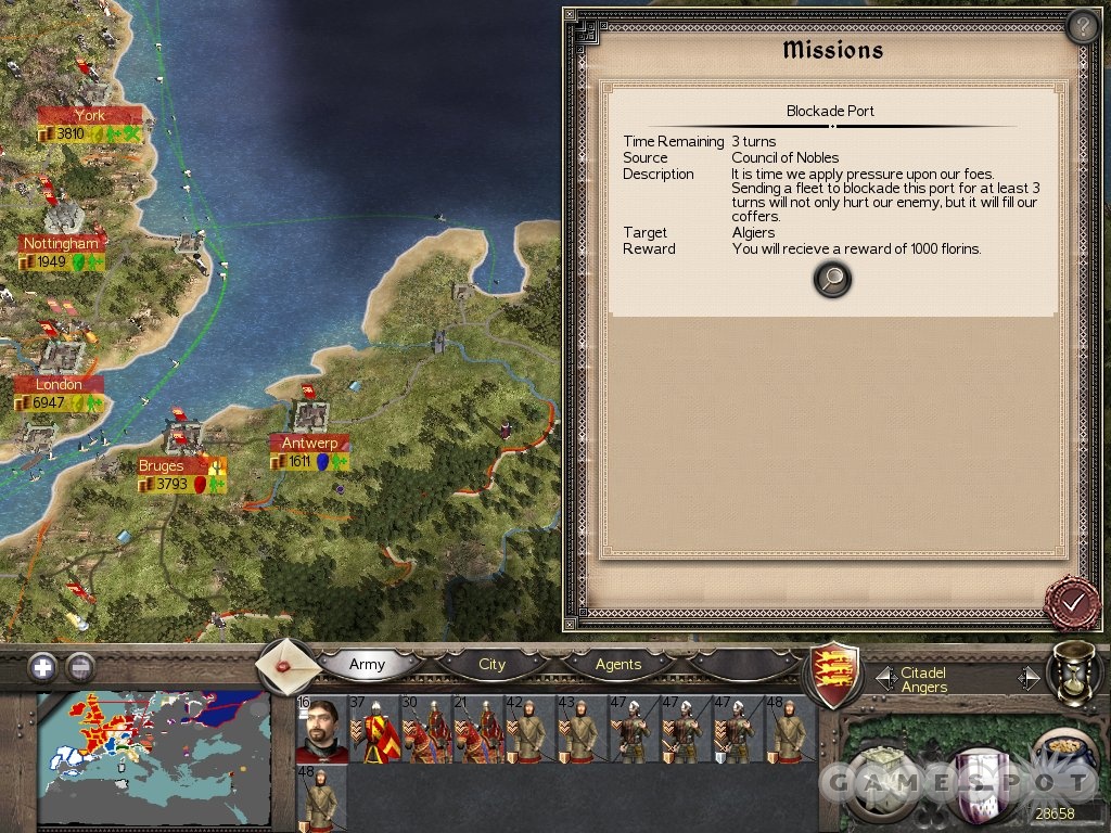 Anda mengelola kerajaan, ekonomi, diplomasi, dan agama di peta yang luas mencakup Eropa, Afrika Utara, Timur Tengah, dan Amerika. Kedalaman manajemen agen (diplomat, mata-mata, pedagang, pembunuh) dan intrik politik (dengan Paus dan invasi Mongol/Timurid) menambah kompleksitas yang membuat setiap permainan terasa unik. Saat dua pasukan bertemu, Anda dapat terjun ke pertempuran besar-besaran dengan ribuan unit di medan perang 3D. Variasi unit yang besar di setiap faksi memungkinkan berbagai taktik. Keakuratan sejarah dalam unit, formasi, dan moral pasukan membuat pertempuran terasa otentik. Masing-masing faksi memiliki unit dan gaya bermain yang berbeda. Inggris memiliki pemanah jarak jauh andal, Prancis dengan kavaleri berat, dan faksi lain dengan kekuatan unik masing-masing. Hal ini mendorong pemain untuk mencoba setiap faksi untuk pengalaman yang berbeda.