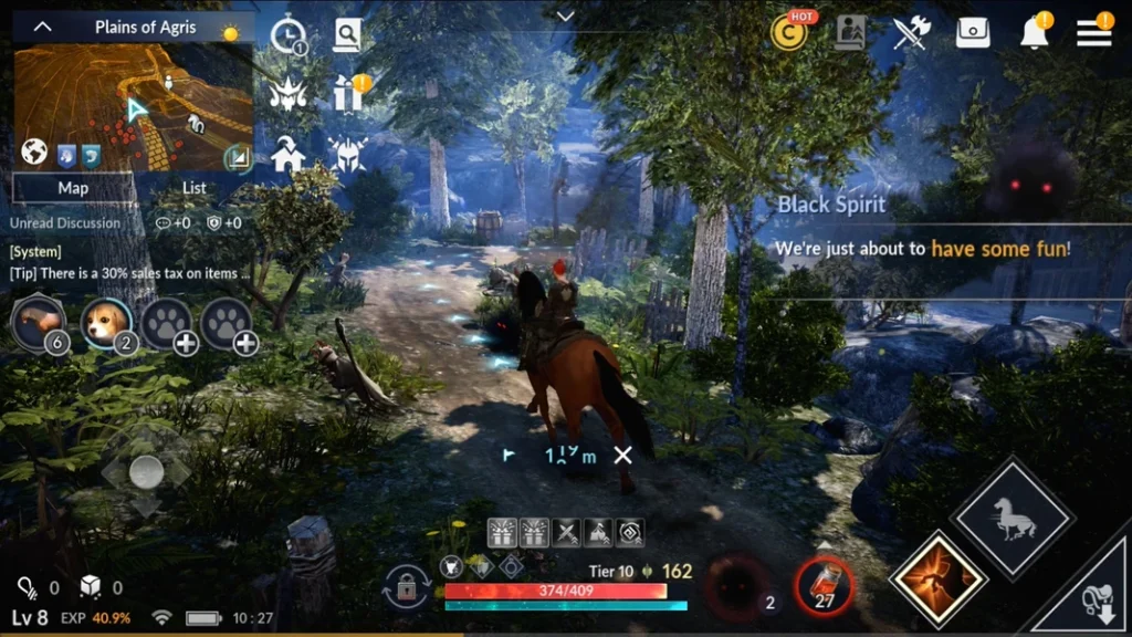 • Fitur otomatis : Untuk kemudahan, game ini menyediakan fitur otomatis seperti auto-pathing untuk menjalankan misi dan mode Black Spirit yang memungkinkan karakter tetap bertani resource saat pemain sedang tidak bermain.