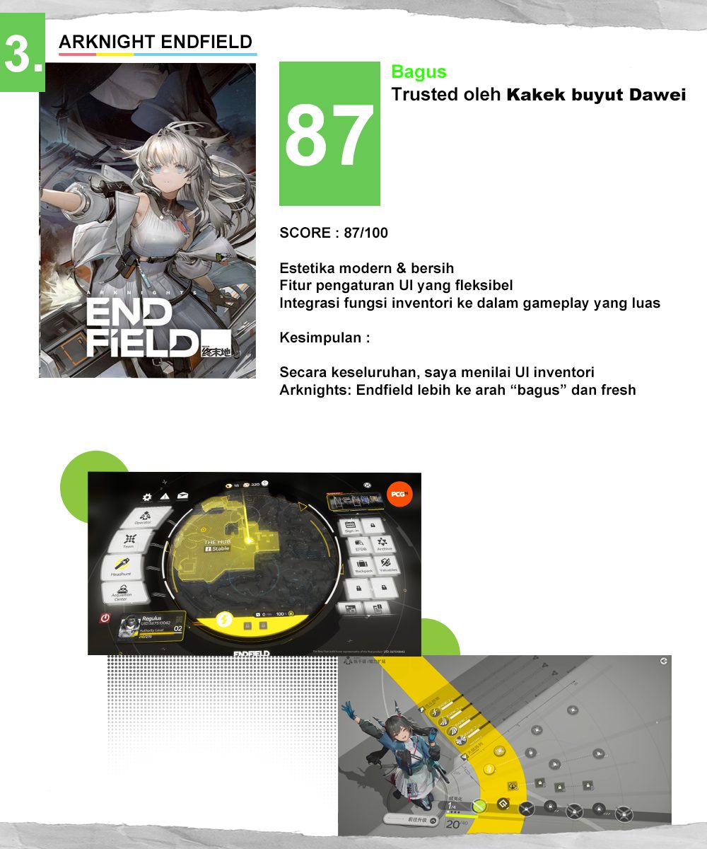 UI Arknights: Endfield terasa solid dan intuitif. Kombinasi antara fungsi, gaya futuristik, dan integrasi gameplay membuatnya layak diberi label “bagus dan fresh”.