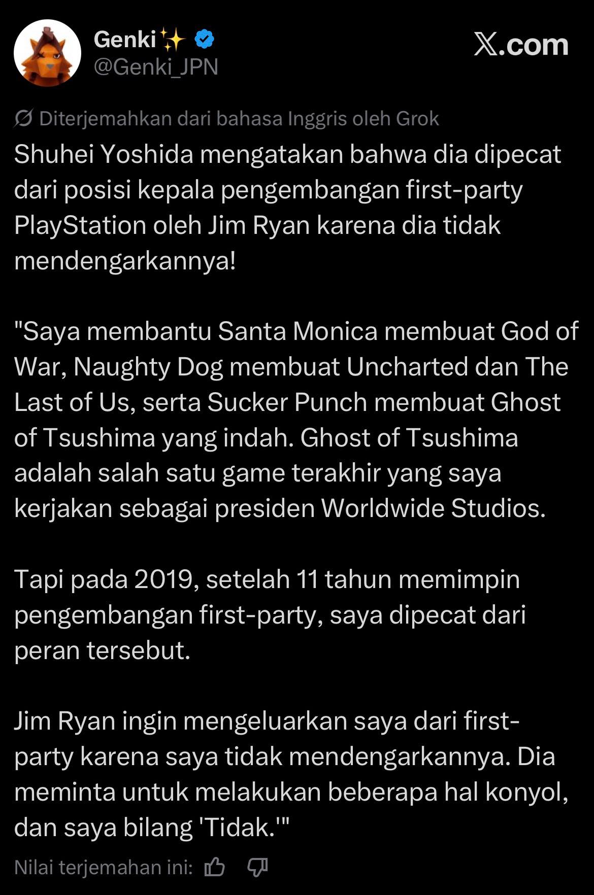 Pengakuan dari Shuhei Yoshida ini membuka sisi lain dari dinamika internal PlayStation, khususnya terkait perbedaan visi di level eksekutif.
