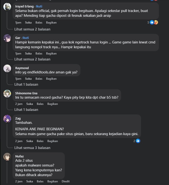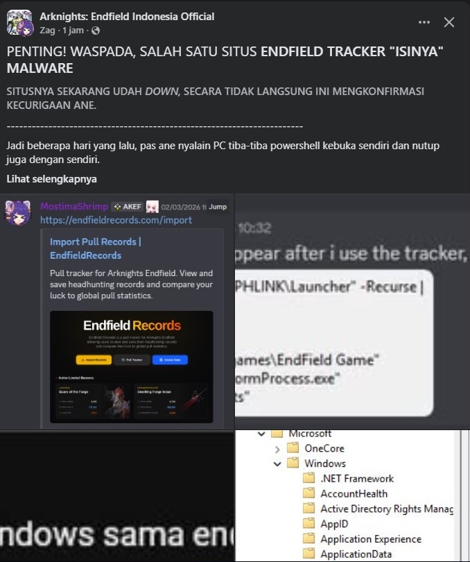 Sebuah unggahan dari seorang pengguna Facebook di komunitas Arknights: Endfield mendadak ramai diperbincangkan. Ia mengaku mengalami kejadian mencurigakan pada PC miliknya setelah mengakses salah satu situs Endfield Tracker untuk mengecek riwayat gacha.