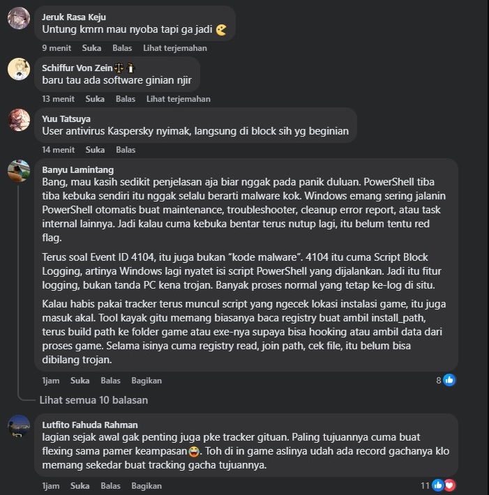 Menurut pengakuannya, beberapa hari setelah mencoba mengimpor data gacha, PC miliknya tiba-tiba membuka PowerShell secara otomatis lalu menutupnya kembali. Hal itu membuatnya curiga ada script berbahaya berjalan di latar belakang.